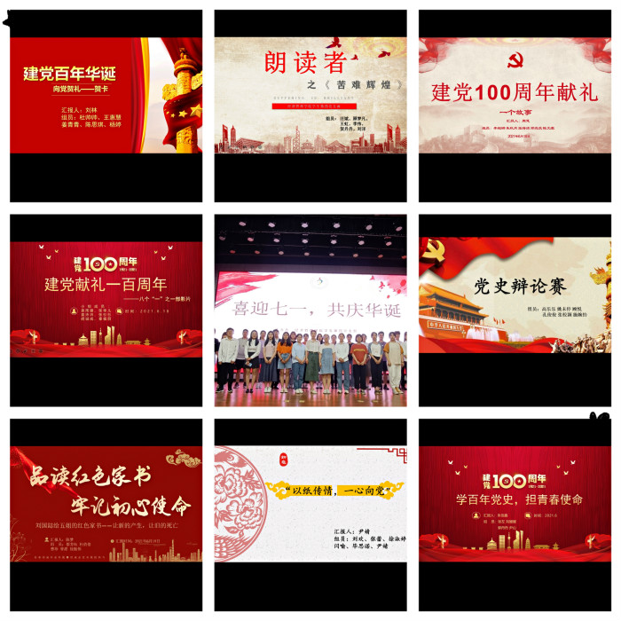 活动前期,四支部以“喜迎七一生日,共庆百年华诞”为主题,从全体党员和支部所属积极分子中征集八种不同类型的作品,分别是一张贺卡、一本书籍、一个故事、一组剪纸、一次参观、一场电影、一封家书、一场辩论。每种作品均以小组为单位报送,小组成员由四支部的党员和积极分子共同组成。经过前期的精心准备和周密安排,遴选出8个优秀的团队在支部大会上进行汇报总结,并根据汇报主题的创意、现场呈现的效果、寓意等评出前三名进行奖励。