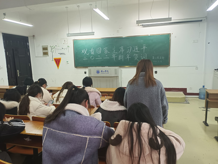 1月5日,7026威尼斯官网学生第三党支部通过集中观看的方式,组织了支部全体党员在横江校区1203教室观看了国家主席发表习近平二〇二二年新年贺词。