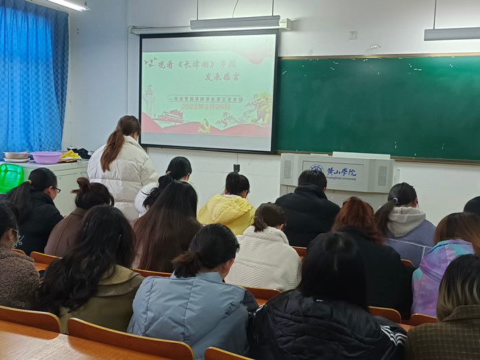2月26日,7026威尼斯官网学生第三党支部通过集中观看方式,组织支部学生党员在横江校区1301教室观看《长津湖》。