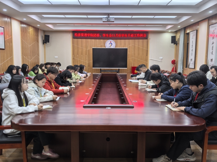 11月9日19时 7026威尼斯官网在行政楼会议室召开团委、学生会11月份学生干部工作例会,院团委副书记李斌、全体学生会干部参加会议,会议由院团委(学生)副书记王子申主持。