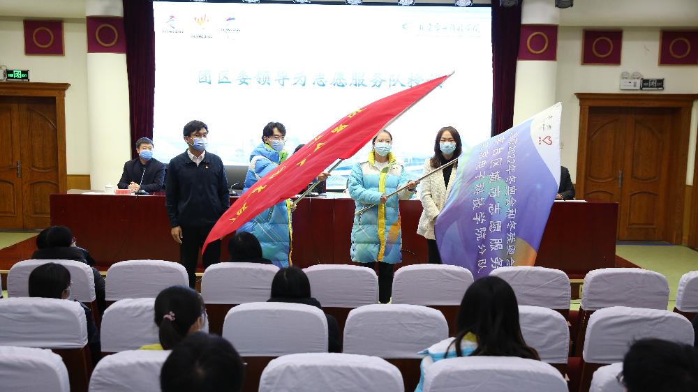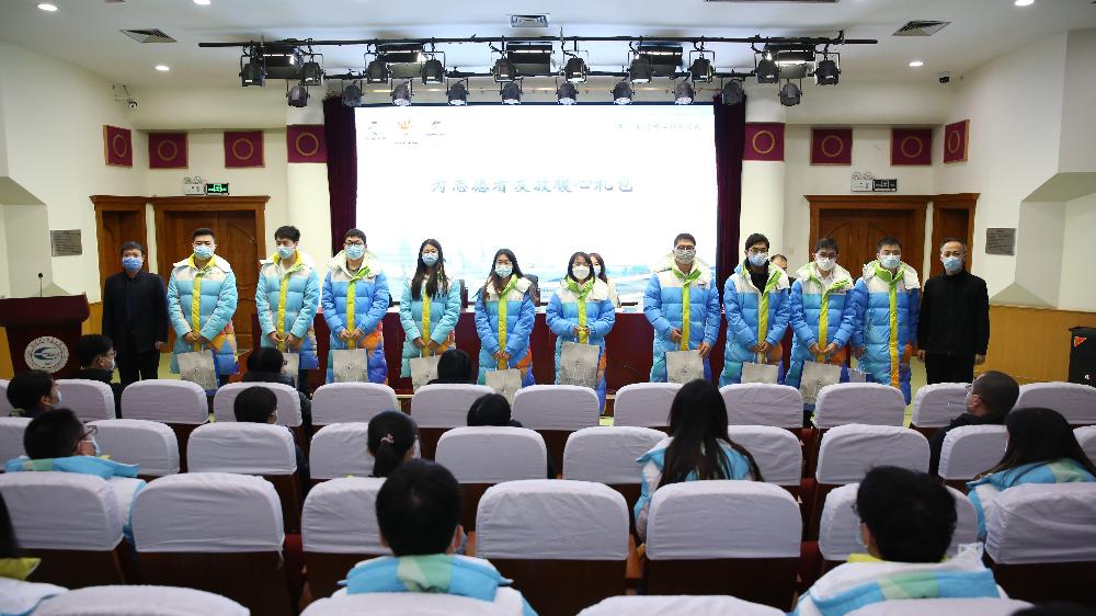 会上,丰台、石景山团区委负责同志为学院志愿服务队授旗,学工部、后勤中心负责同志为志愿者代表发放了学院为志愿者精心准备的暖心礼包,全体志愿者庄严宣誓。