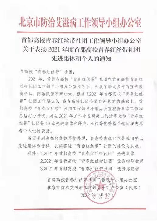 近日,在2021年度首都高校青春红丝带社团先进集体和个人评选中,电科院“爱公益联盟”学生社团经过层层选拔,获评“先进集体”称号。