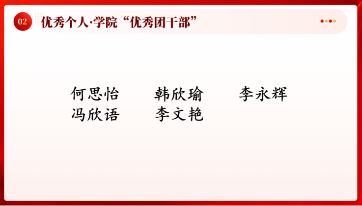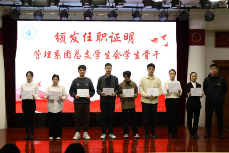 我们不懈砥砺奋进,秉持着严谨认真的工作态度。本次大会表彰了一批砥砺奋斗的代表——管理系学生党支部、团总支学生会学生骨干。他们以身作则,努力提高工作效能,热心服务广大同学。他们守好了兜底防线,始终把“全心全意为大家服务”作为工作的出发点和落脚点。