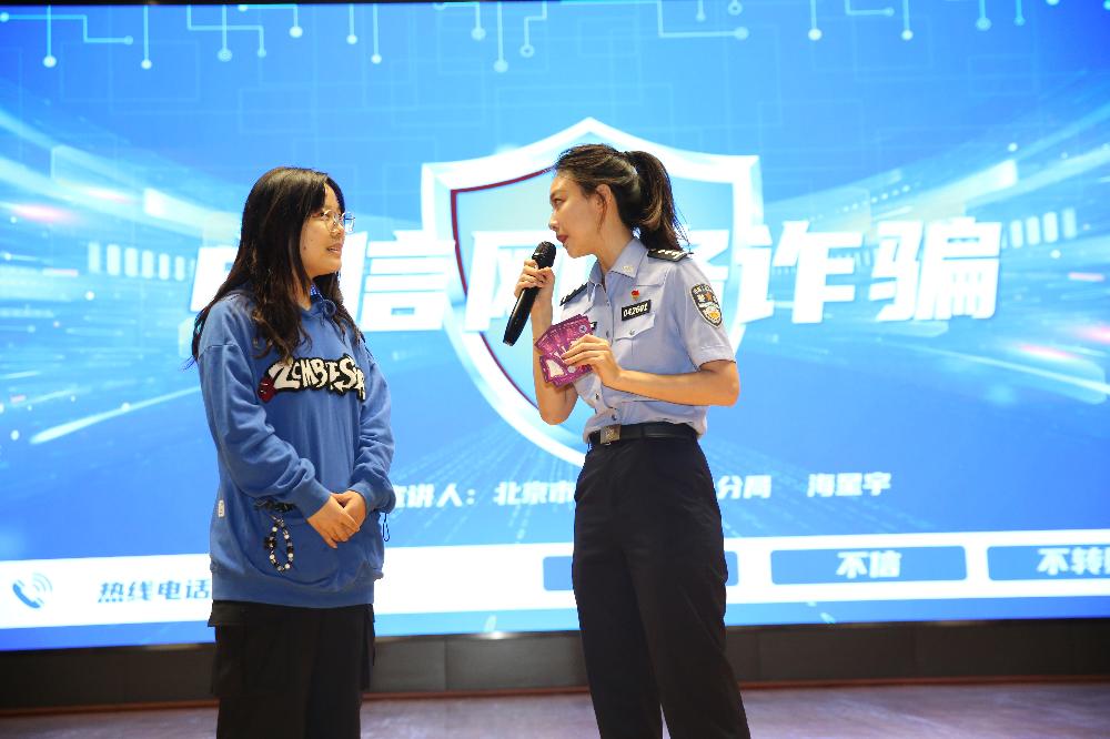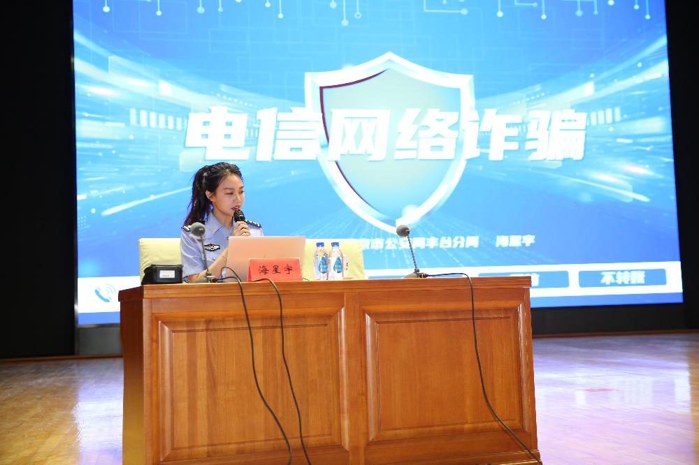 为进一步提升学生防范电信网络诈骗安全意识,有效预防和减少各类电信网络诈骗案件的发生,9月24日下午,学院邀请丰台公安分局反诈中心警官在文化艺术中心进行防范电信网络诈骗宣传讲座,1100余名学生现场聆听。宣讲警官结合实际案例为同学们系统详细讲解了电信网络诈骗的概念、特点和常见的诈骗手段及类型,对在校学生容易发生的刷单返利、虚假网络游戏交易和购买演唱会门票等电信网络诈骗案件进行细致分析,并结合《中华人民共和国反电信网络诈骗法》等法律法规对出租、出借、出售电话卡和银行卡,架设虚拟拨号设备等违法行为应承担的法律后果进行了细致解读。